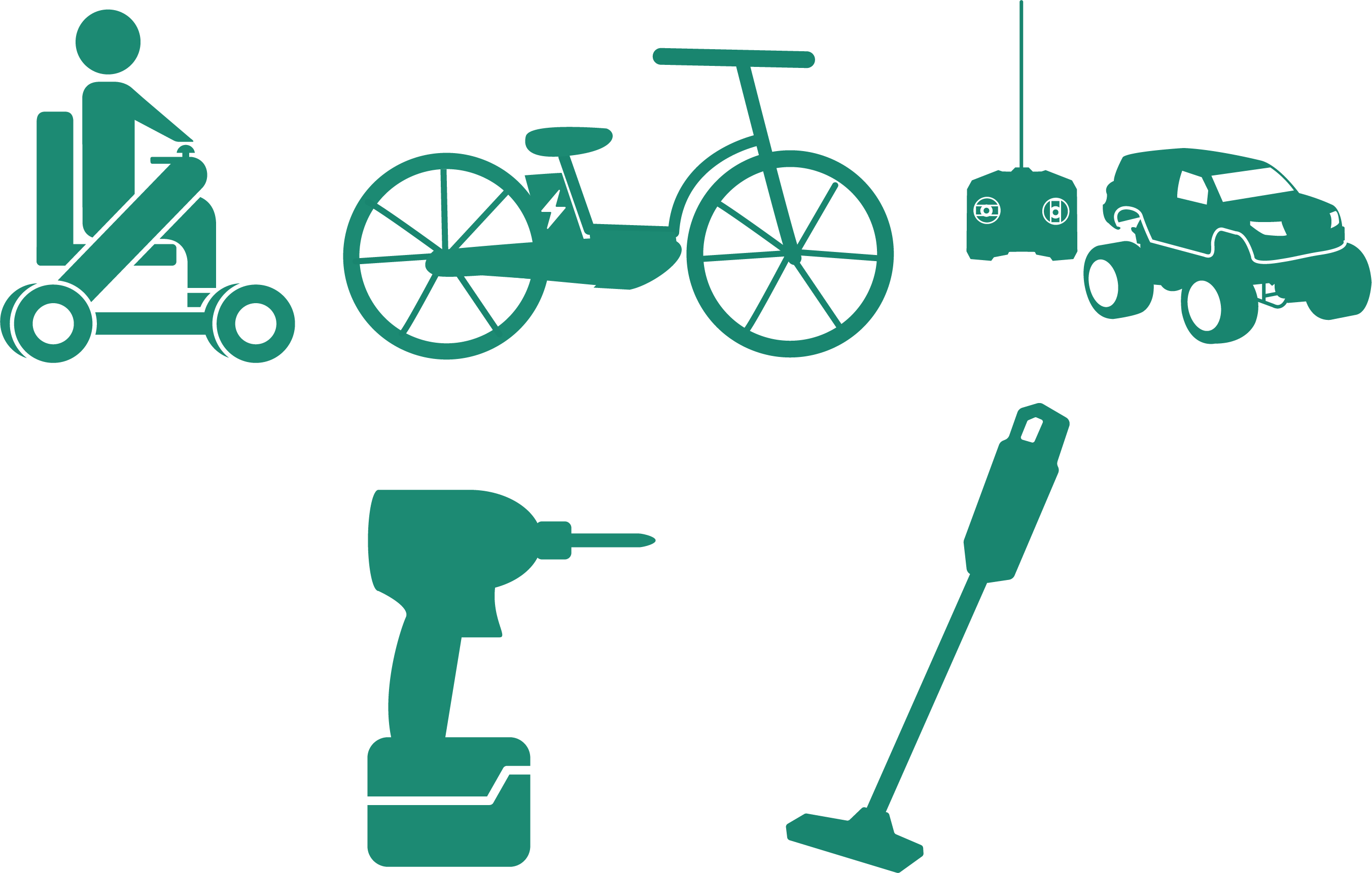 用途:電動アシスト自転車、電動工具、医療・介護(電動車いす、ストレッチャー)、ラジコン、家電など