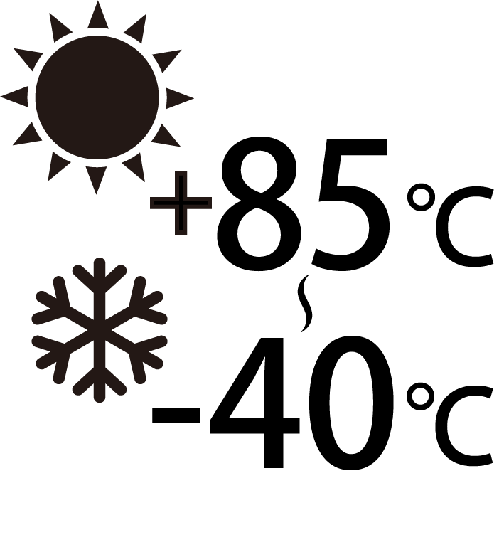 車載用途に要求される広い使用温度範囲(-40∼+85°C)に対応できます。( 高耐久車載用途ニッケル水素電池使用時)