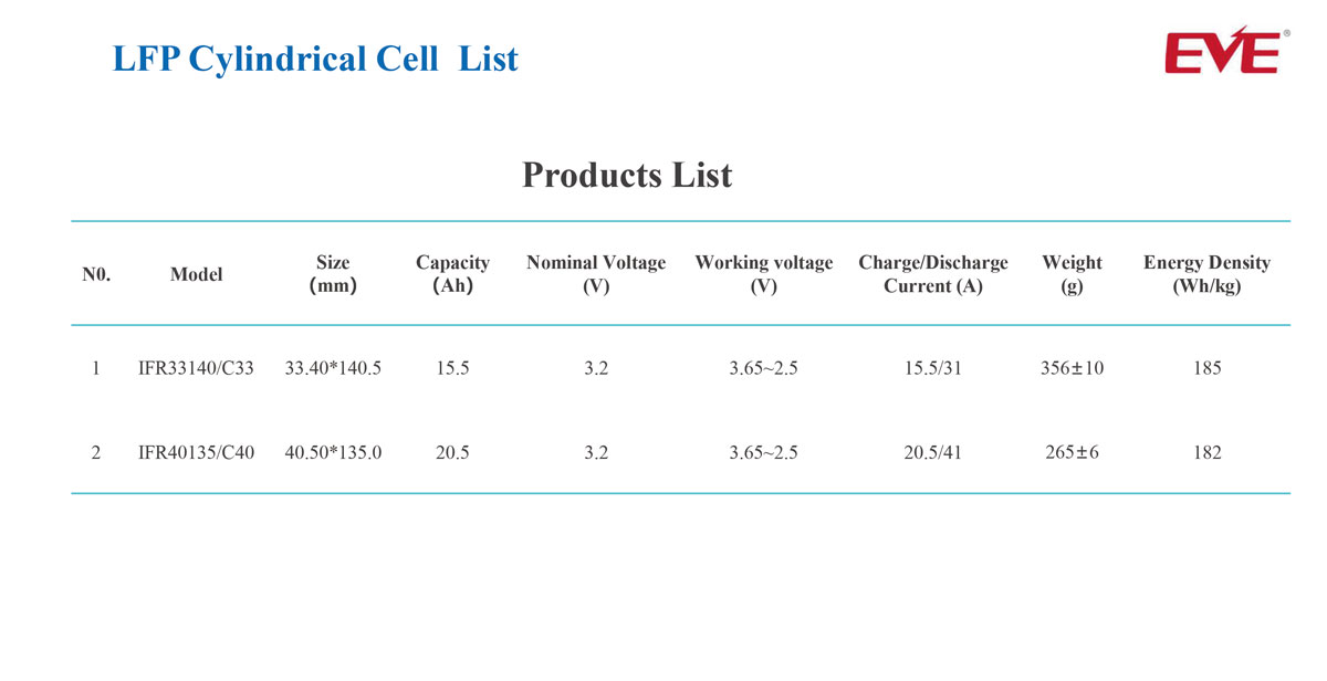 ・LFP円筒型セル(IFR33140と40135)が2022年に大量生産。